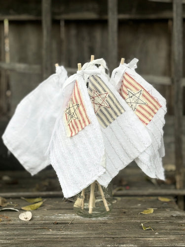 Vintage Chenille American Flag with Red Ticking Stripe-FREEDOM, AMERICA, LIBERTY