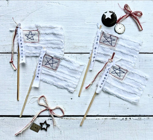 Vintage Chenille American Flag with Blue Ticking Stripe-FREEDOM, AMERICA, LIBERTY