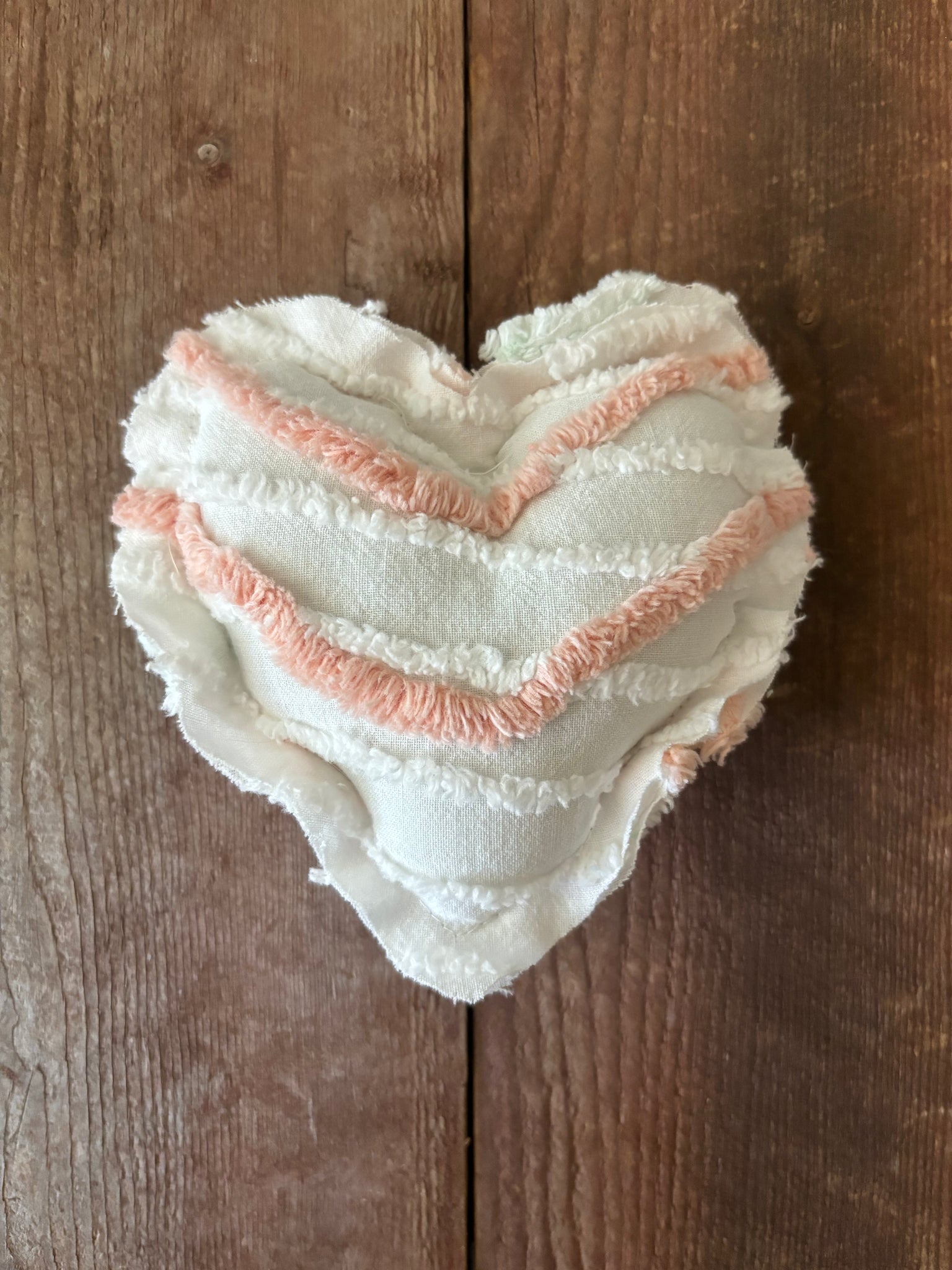 This heart is hand made from plush and soft vintage chenille. Measuring approximately 5 inches, display in a large apothecary jar, a dough bowl, on a shelf or on a tiered tray! Hearts are a year round decoration and a sweet gift for all ages!