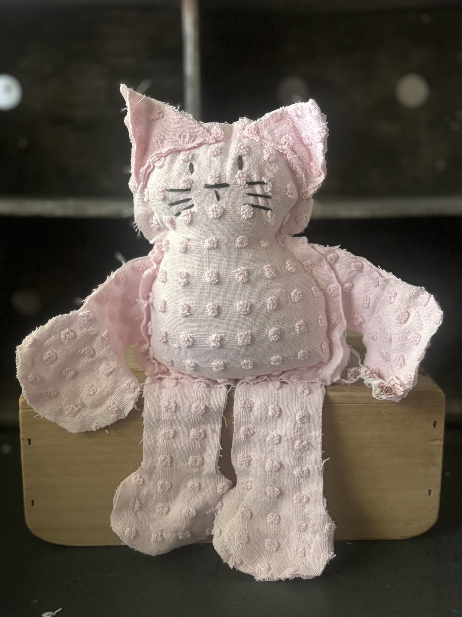 Pink Polka Dot Vintage Chenille Cat